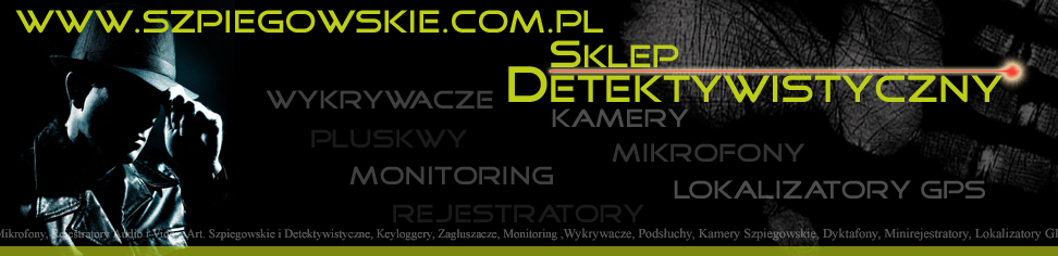 Nowoczesny sklep z artykułami szpiegowskimi i detektywistycznymi. Znajdš tu Państwo między innymi mini kamery, podsłuchy, spyphone, wykrywacze podsłuchów, lokalizatory GPS, zagłuszacze GPS i GSM oraz wiele innych urzšdzeń jak również usług Detektywistycznych |